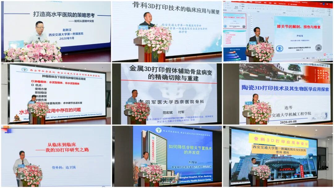 在随后的学术分享中,各位专家教授的讲座让与会成员收获满满。首先,赵新汉院长从一个管理者的视角带来了《如何从困境中突围--打造出高水平医院的战略思考》,西安交大一附院长安区医院副院长韩学哲教授从3D打印技术的兴起、发展、骨科临床的应用及未来的应用前景结合自己的临床经验向大家进行了全面的讲述。西安交大一附院骨外科副主任尹战海教授及西安市红会医院骨坏死与关节重建病区主任郝阳泉教授分别从膝关节、髋关节的解剖形态、损伤机理、修复方法以及置换手术中的决定成败的细节入手,为参会代表们身临其境的分析他们宝贵的经验。西安交通大学机械制造工程国家重点实验室连芩教授则从陶瓷3D打印技术出发,探索其生物医学应用,为参会代表今后对于打印组织工程支架,进一步培养活性细胞复合物的研究,提供了非常值得借鉴的方法。空军军医大学西京医院骨科范宏斌教授则从骨盆肿瘤切除后通过金属3D打印假体进行精确重建,通过大量成功的临床案例展示了3D打印技术如何为临床工作提供的个性化、精细化、微创化的服务。西安市红会医院骨病肿瘤科同志超教授分享了下肢恶性肿瘤切除后的重建假体的选择,西安交大一附院长安区医院骨外科邢科副主任医师则从基础到临床,介绍了骨科3D打印技术的临床应用及设计。最后,西安交大一附院长安区医院骨外科主任边卫国教授分享了他的3D打印研究之路,介绍关于3D打印技术在骨科领域应用的发展历程、应用现状及其技术展望。会议讨论环节,参会人员对目前值得探讨和思考的3D打印热点问题做了深入讨论,各抒己见,百家争鸣。